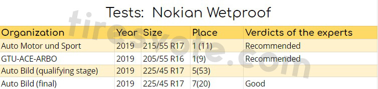 In the season’s tests, Nokian Wetproof debuted more successfully than Nokian Powerproof, also presented in 2019. It won the gold medals from Auto Motor und Sport and GTÜ/ACE/ARBÖ. At the same time, Auto Bild put this tire model on the seventh place out of the possible 20, which can also be considered quite a decent result.